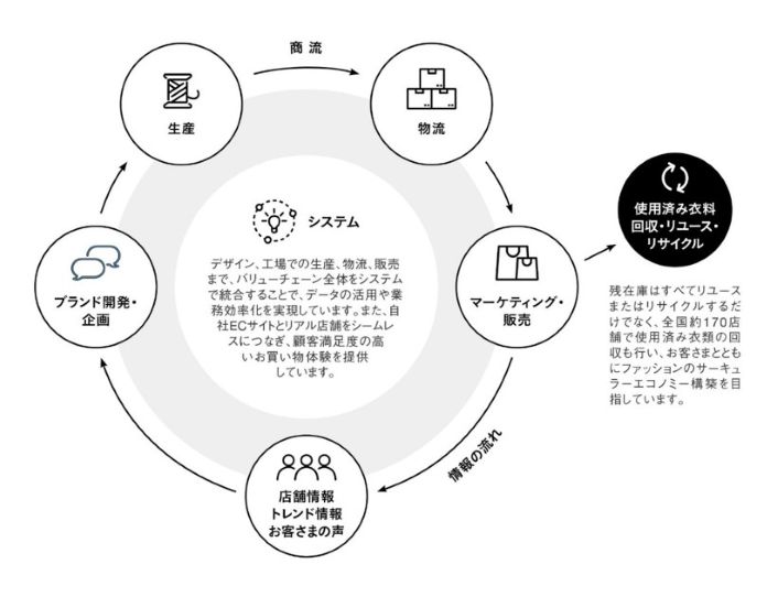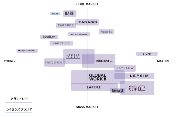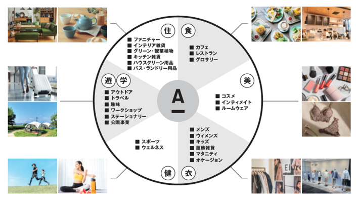 ADVANTAGE アダストリアの強み アダストリアは、変わり続ける事業環境に対応するため、 その時代に合わせて、幾度もビジネスモデルを変革することで、お客さまにワクワクを届けてきました。 これからも輝き続ける企業となるべく、以下の強みを活かしながら挑戦し、進化し続けていきます。 1.マルチブランド “自分らしさ”をたくさんの選択肢の中から選べるいま、 アダストリアはお客さま一人ひとりの感性と創造的な暮らしに、多彩なブランド展開でお応えします。 各ブランドがそれぞれターゲットを変えブランドらしさを追求することによって、 多様なライフスタイルを提案し、お客さまの人生に長く寄り添いながら、すべてのお客さまにワクワクを届けます。 ※2025年10月時点 VIEW BRAND INTRODUCTION 2.マルチカテゴリー アパレルに加え、暮らしをとりまく様々なカテゴリーで、 お客さま一人ひとりの多様なライフスタイルに、ファッションを軸としたアイテムやサービスをご提案します。 食や美、健康など、多彩なカテゴリーに展開領域を広げることで、 市場の変化や顧客ニーズの多様化に対応したブランド開発や、 出店チャネルの拡大、店舗面積の大型化により店舗の魅力を向上させ、 誰もがファッションと人生を楽しめる世界をつくります。 3.バリューチェーン 企画から生産、物流、販売までを、アダストリアグループ内で、 一貫しておこなうことが出来る仕組みが整っています。 この仕組みを活かし、国内外約1400の店舗にご来店されるお客さまの声や1万名を超える店舗スタッフの声をもとに、 トレンドや店頭情報をいち早く次の商品展開やサービスに活かし、 差別化された高品質な商品を生み出すことで、世界中のお客さまに新しいファッションをお届けします。