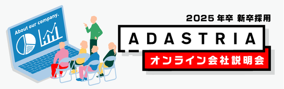 2024.02.01 INFO 2025年新卒採用 オンライン会社説明会について ただいまアダストリアマイページ内では 2025年新卒採用オンライン会社説明会を公開しています! 会社説明会は、オンラインで動画やWEBページをご視聴いただき 理解を深めていただける内容となっております。 楽しみながら社風を感じていただけるコンテンツを多数ご用意しておりますので、是非ご覧ください! また、その中のコンテンツの1つ「CROSS TALK」では、 様々な職種で活躍している現役社員が仕事内容や働き方、 アダストリアの選考についてや就職活動のポイントなど お役立ていただける内容をお話していますので、ぜひご覧ください。 《視聴方法》 アダストリアマイページをご登録後、 マイページ内「Step Navi」よりオンライン会社説明会をクリック! 《視聴可能期間》 ~3月13日(水)15:00まで マイページへはこちら↓ アダストリア マイページ2025 ※ご登録がまだの方は新規登録ボタンからご登録ください。 なお、エントリー締切は3月13日(水)15:00までです。 選考参加には会社説明会の動画視聴が必須となりますのでご注意ください! 皆さまと選考でお会いできることを心より楽しみにしております。 VIEW NEWS LIST